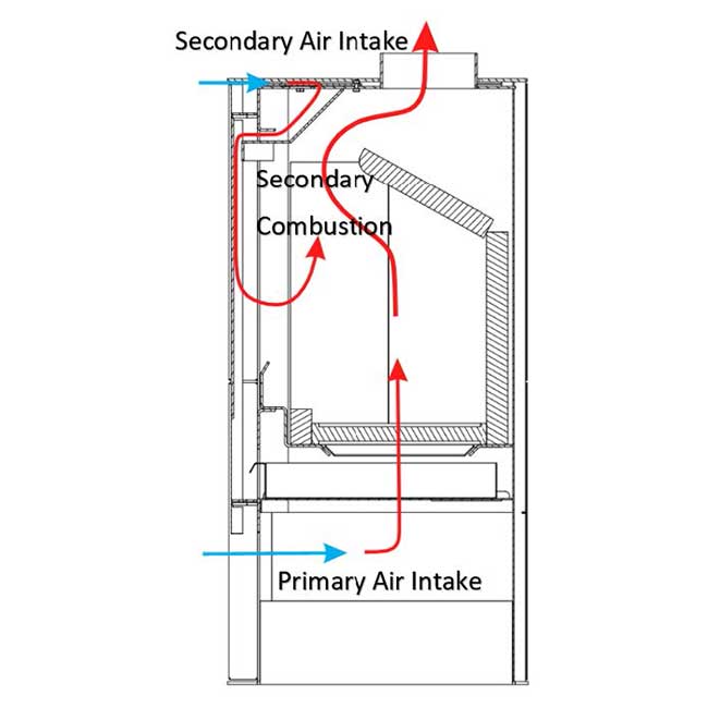 The Heatwave Picasso boasts a contemporary aesthetic with its recess door and flush handle. Offering precise control over combustion, it features a fixed primary and a controllable secondary air intake, allowing you to tailor the heating experience to your liking. Primary air enters from the bottom, fueling the fire through the ash pan chamber, while secondary air, heated by the top plate, enters from the top, ensuring optimal combustion efficiency. As the heated air flows over the viewing glass, it acts as an air-wash, keeping the glass clean and free from soot buildup. Additionally, it provides convenient small wood storage, combining functionality with elegance for an unparalleled heating solution.