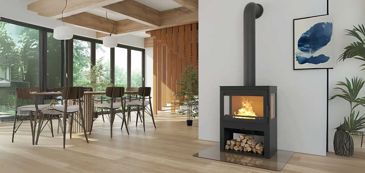 The NORDflam Marsala fireplace, a pinnacle of craftsmanship and innovation in the realm of slow combustion fireplaces. Designed to elevate your living space with unparalleled warmth, efficiency, and style, this fireplace embodies the perfect synergy of modern design and traditional functionality.