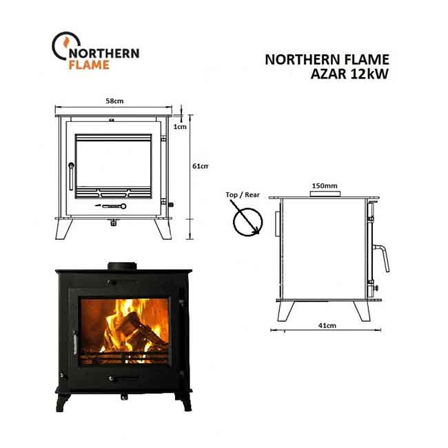 The Azar is a high-end product that burns with over 76% efficiency due to the new Tertiary Air System, which will save the user money over the years. It has passed the DIN+ particle test that will soon be required for all stoves in the UK and it is EN Approved. It is manufactured according to European design in China for the U.K. market. It has been rigorously CE and smoke control tested through Kiwa Gastec in the UK and it is British standard approved.  It comes 5-year limited guarantee.