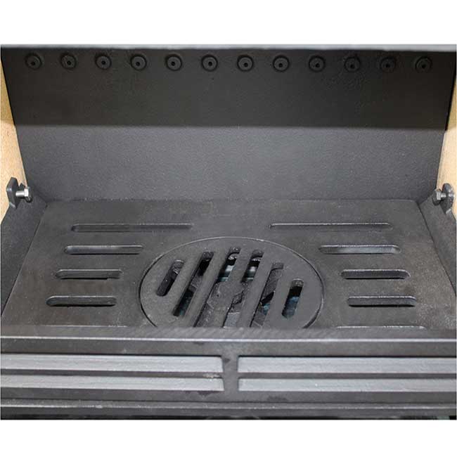 The combustion chamber is lined with vermiculite firebrick and comfortably loads 35cm logs. It comes with a cast iron, multi-fuel ash riddling grate and a removable ash pan for an easy clean. Included is an ash pan tool for ash pan removal; a glove for opening the door and adjusting the air levers; and an instruction manual.
